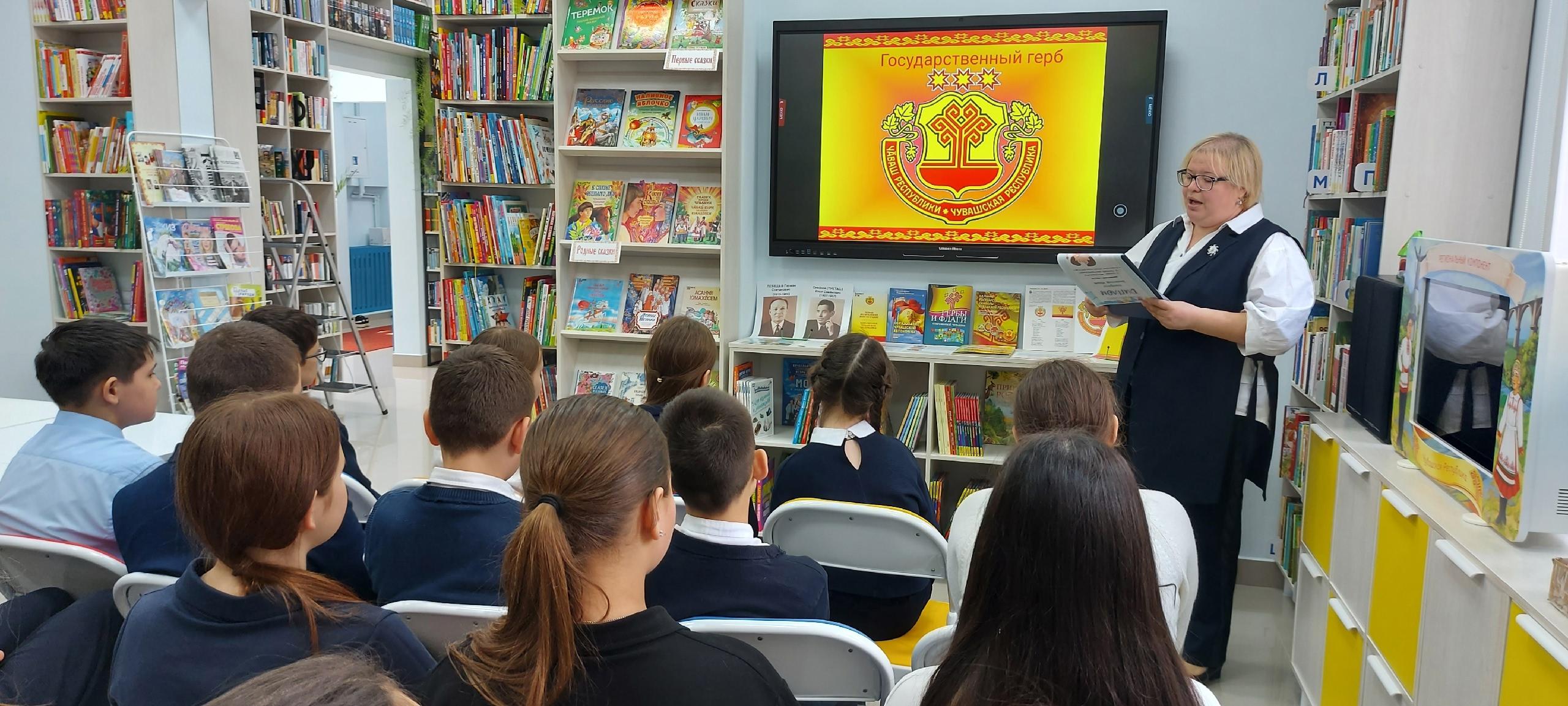 Величие и честь любого государства или республики воплощаются, прежде всего, в его символах – это государственный флаг, герб и гимн. Символика государства – это достояние народа, его высшие святыни, охраняемые и защищаемые государством. Ежегодно 29 апреля отмечается День Государственных символов Чувашской Республики. Эта дата выбрана не случайно: именно в этот весенний день в 1992 году Верховным Советом Чувашии были приняты постановления о государственном гимне, гербе и флаге. 22 апреля в детской библиотеке для учеников 6 «А» класса СОШ № 10 состоялся час геральдики «Мой герб, мой флаг, моя Республика». Ребята узнали о Государственных символах нашей республики, об истории создания Государственного герба, познакомились с биографией создателей Чувашского гимна: поэта Ильи Тукташа и композитора Германа Лебедева. Дети стоя прослушали гимн Чувашии и, отвечая на вопрос, какие чувства у них вызывают слова гимна, сказали, что они чувствуют, как пробуждается природа весной, а ей навстречу раскрывается душа, она хочет петь и славить свою Родину. Школьники рассмотрели герб и флаг Чувашии, получили сведения о значении изображенных на них «Древа жизни» и «Трех солнц», узнали, как изменялся на протяжении истории герб Чувашии, как выглядят гербы городов и районов нашей республики.