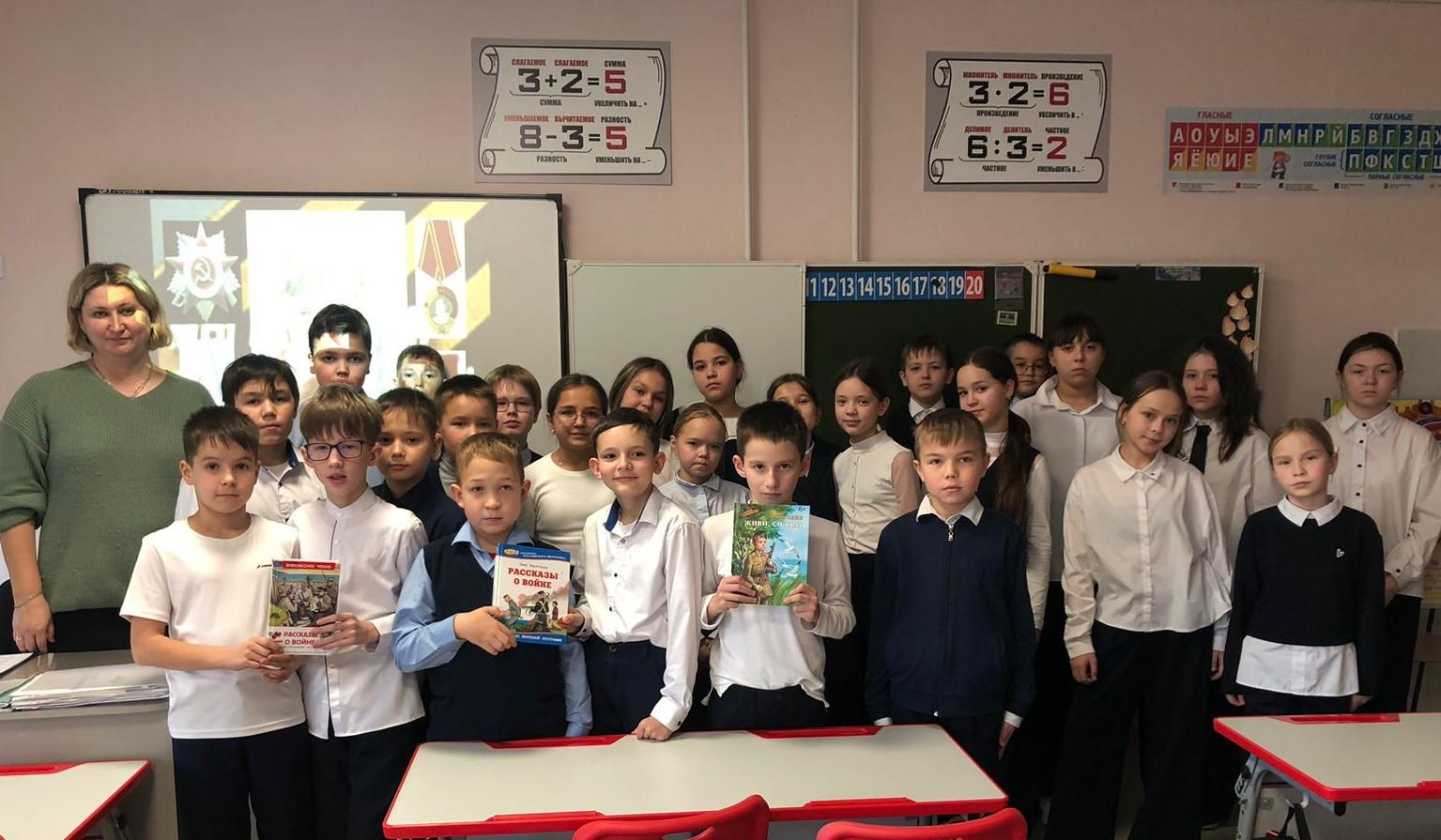 В завершение часа учащиеся познакомились с книгами из серии «Детям о Великой Отечественной войне» и спели песню «9 мая» и «Катюша».