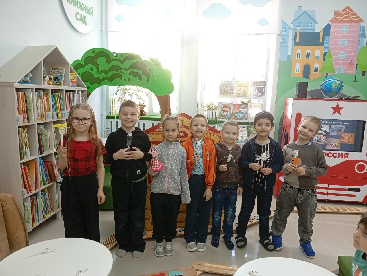 31 марта в детской библиотеке состоялось очередное занятие в творческой мастерской «Фантазеры». Для воспитанников детского сада № 9 состоялся час творчества к Всемирному дню Театра «Театр на ложках». Ребята просмотрели электронную презентацию и узнали, что такое театр и из чего он состоит, как работает театр, какие бывают театры. Поговорили о театральных профессиях. Остановились на профессии художника – кукольника, который в театральной мастерской изготавливает персонажей для кукольного театра. Мальчики и девочки рассмотрели фотографии разных кукол: пальчиковых, марионеток, бибабо – кукол на руку, а также кукол для самодеятельных постановок, изготовленных из бумаги, картона и бросового материала. Малыши вместе с воспитателем и библиотекарями изготовили кукол на ложках для постановки сказки «Колобок». Для поделок были использованы одноразовые ложки, кусочки цветной бумаги, нитки, клей, липкая лента и цветные маркеры. С готовыми поделками дети с удовольствием разыграли сказку.
