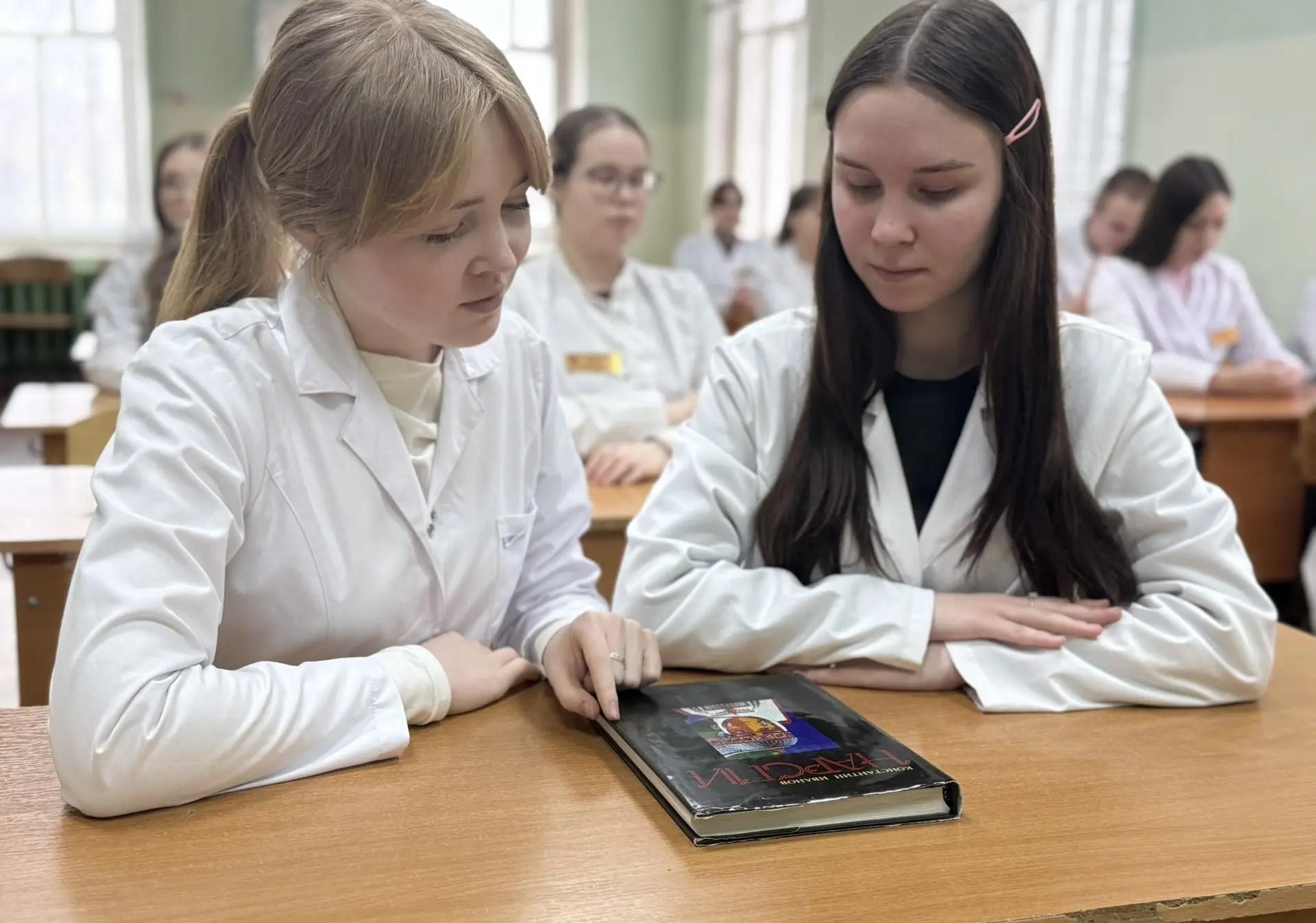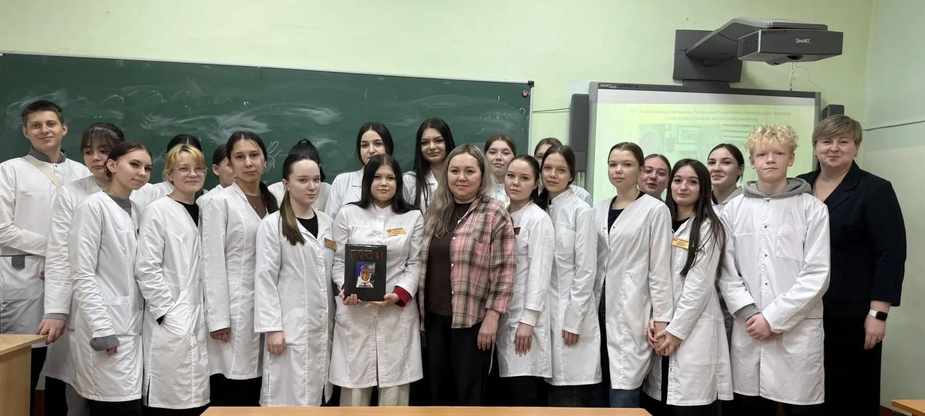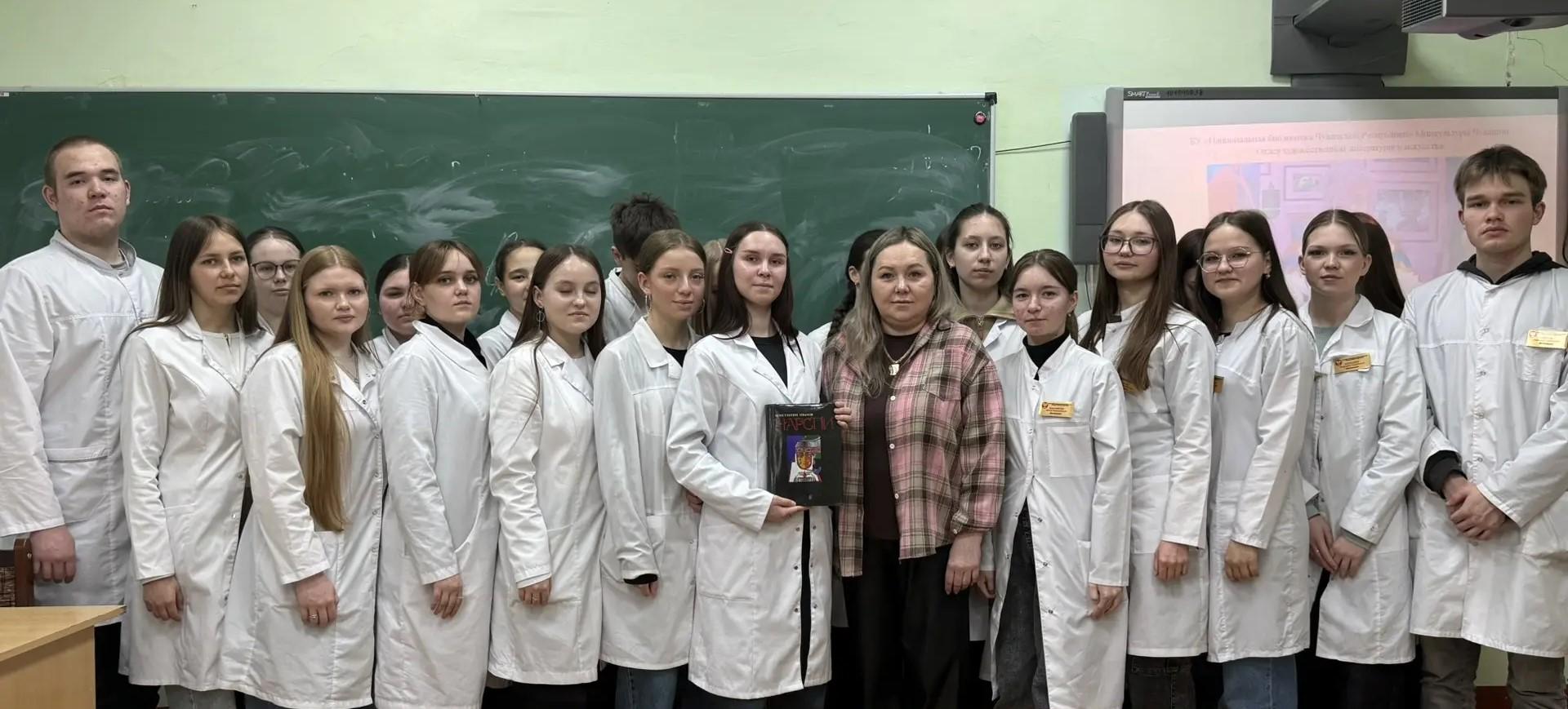 В рамках акции «День медленного созерцания и искусства «БиблиоИмя: Праски Витти.90 лет», 3 апреля 2026 года библиотекарь Светлана Варламова посетила ЧМК и познакомила студентов-первокурсников медицинского колледжа с биографией и творчеством художника-монументалиста Виталия Петровича Петрова, известному всему миру под именем Праски Витти, которому принадлежат монументальные мозаики и витражи в городах России, а работы в технике горячей эмали принесли ему мировое признание. Рассказала о жизненном и творческом пути, о его связях с чувашской литературой. Ведь именно он создал уникальный художественный язык, объединив фольклор, космизм и модернизм.