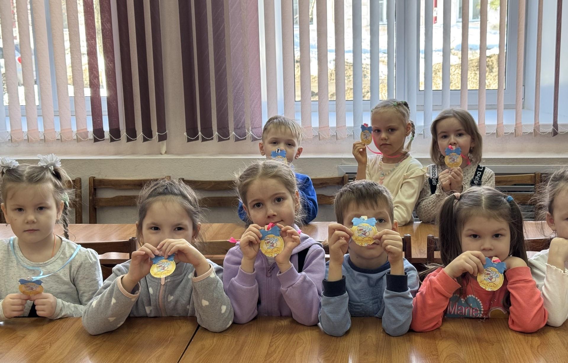 Библиотекари предложили ребятам чаще разыгрывать спектакли по прочитанным книгам, подарили им медальки "Книголюб"! и продемонстрировали мультфильм по сказке Братьев Гримм «Горшочек каши».