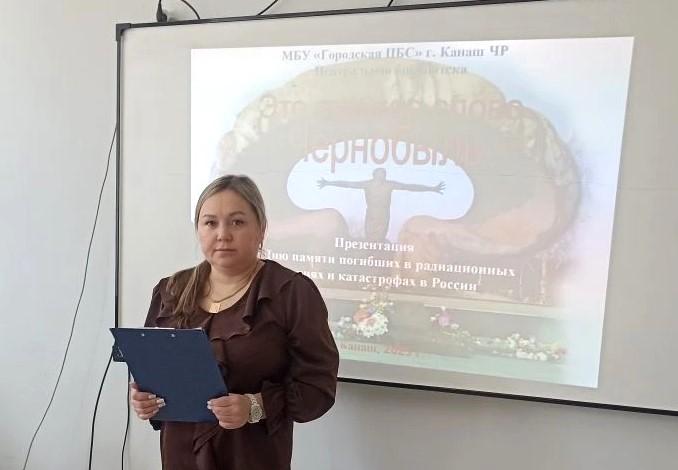 В рамках этой инициативы сотрудники Центральной библиотеки провели познавательный экологический урок для студентов Канашского педагогического колледжа. Тема занятия «Чернобыль: это не должно повториться», была выбрана не случайно. Библиотекари поделились с ребятами информацией о масштабах и последствиях той страшной аварии, ее влиянии на экологию и демографию планеты. Особое внимание было уделено подвигу ликвидаторов, в том числе первых, кто столкнулся с катастрофой – пожарных.