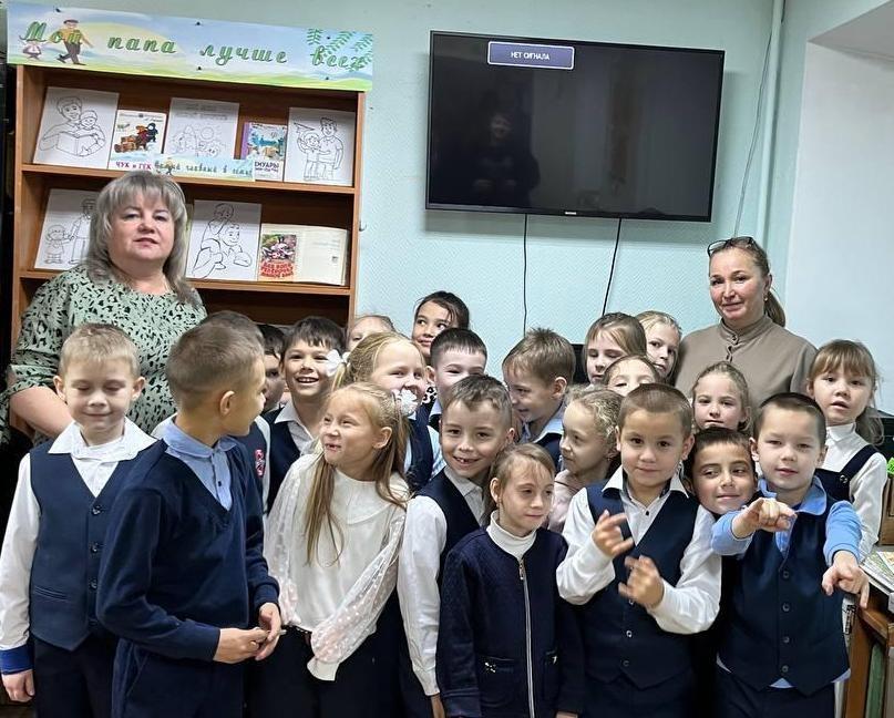 В рамках библиотечной акции «С папой дружно мы живем!» 7 ноября 2025 г. сотрудники филиала №3 – библиотеки семейного чтения для первоклассников СОШ №6 провели громкие чтения «Стихи мы папам посвящаем».