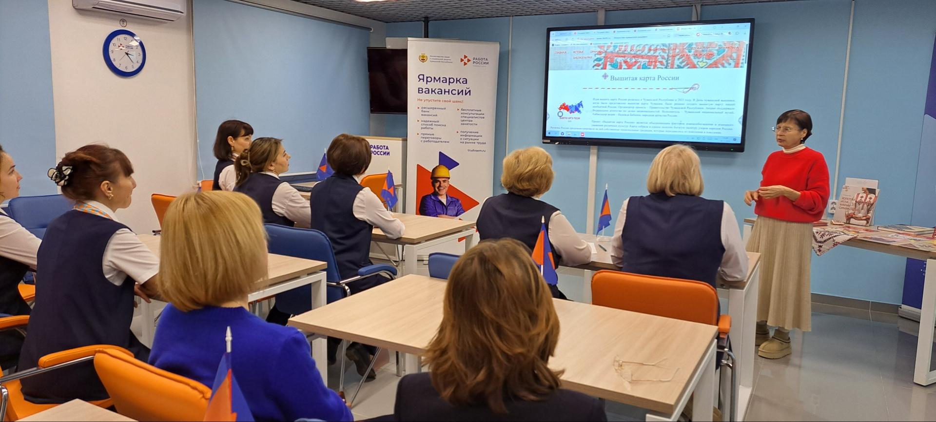 В этот день библиотекарь Центральной библиотеки Наталия Феклина провела групповую консультацию «И чудный видится узор» для сотрудников кадрового центра "Работа России" в г Канаше.