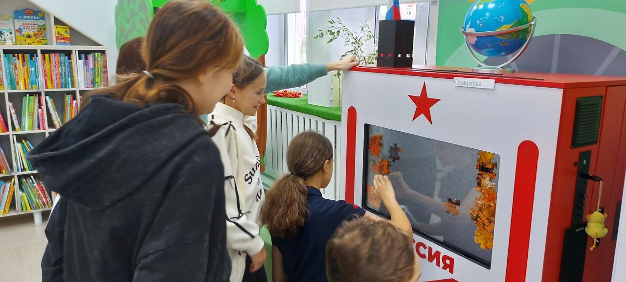 30 октября в детской библиотеке для учеников 6 «В» класса СОШ № 3 в рамках квест-акции «Каникулы с осенней книгой» состоялась игра – квест «Осенняя строка». Квест проходил с использованием современного интерактивного оборудования, полученного в рамках реализации проекта по модернизации детской библиотеки. Ребята, объединившись в команды «Осенний бал», «Листопаднички» и «Октябринки», совершили забег по пяти станциям. На станции «Собирайка» ребятам нужно было собрать пазл на экране интерактивного комплекса «Патриот». В информационном киоске была оборудована станция «Поэтическая», здесь нужно было пройти викторину «Золотой листопад» и назвать фамилии авторов известных стихотворных строк об осени. Станция «Угадайка» на интерактивной панели в зале «Мост – мой островок творчества» содержала онлайн – кроссворд «Приметы осени». На станции «Времена года» в моноблоке «Региональный компонент Чувашская Республика» школьников ждала интерактивная викторина. На станции «Творческая» с помощью 3D-ручек участники игры изготавливали из пластика брелки в виде осенних листьев. После прохождения всех станций и подсчета баллов выяснилось, что победила команда «Осенний бал». Все ребята унесли с собой отличное настроение, море новых впечатлений и собственные поделки.