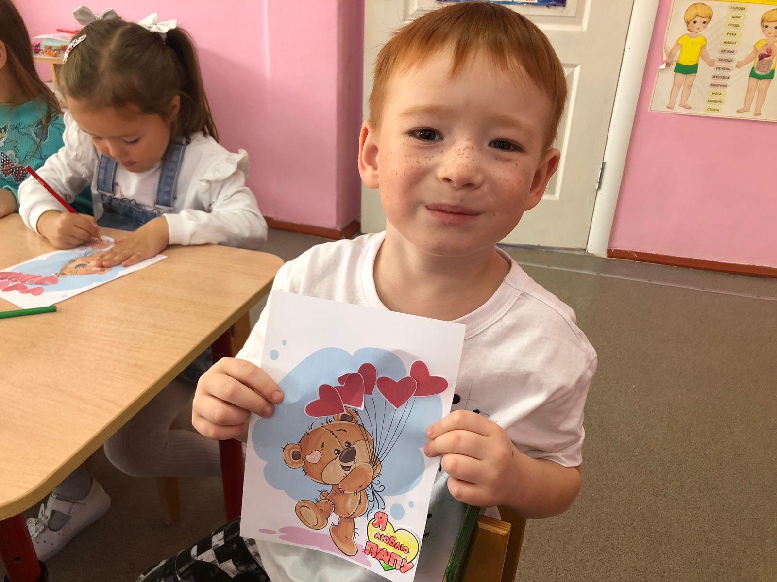 Далее юные читатели сыграли в игры «Поймай рыбку» и «Пронеси шарик», послушали рассказ А. Раскина «Как папа был маленьким». Затем дошкольники приступили к изготовлению открытки: медвежонок держит в лапах красные шарики в виде сердечек. Ребята очень старались и у каждого получился свой неповторимый подарок!