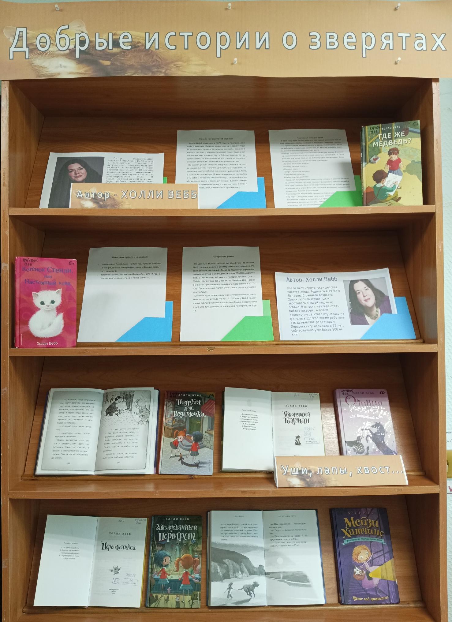 В рамках Всероссийского дня животных в филиале №3 – библиотеке семейного чтения оформлена книжная выставка «Добрые истории о зверятах» автора Холли Вебб. С раннего возраста автор любила животных. Она придумывала про них разные истории. Сейчас из-под пера Холли Вебб вышло уже более ста книг для детей, из них около семидесяти на русском языке. Главными героями всех книг являются мальчишки и девчонки и их домашние питомцы, которые попадают в самые разные жизненные ситуации. Каждая история поучительная, наполнена чувством уважения и сострадания к ближнему. Читать такие книги интересно, и даже полезно для общего развития. Эти книги рекомендованы для детей младшего школьного возраста.