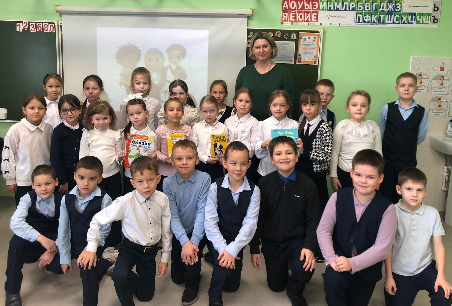 Далее учащиеся познакомились с книгами о дружбе и доброте: А. Крингс «Пес Артос, или Урок доброты», Т. Нолан «Лапа дружбы», Г. Остер «Котенок по имени Гав», В. Сутеев «Сказки про зверят» и выполнили объёмную аппликацию из цветной бумаги «Цветок толерантности».