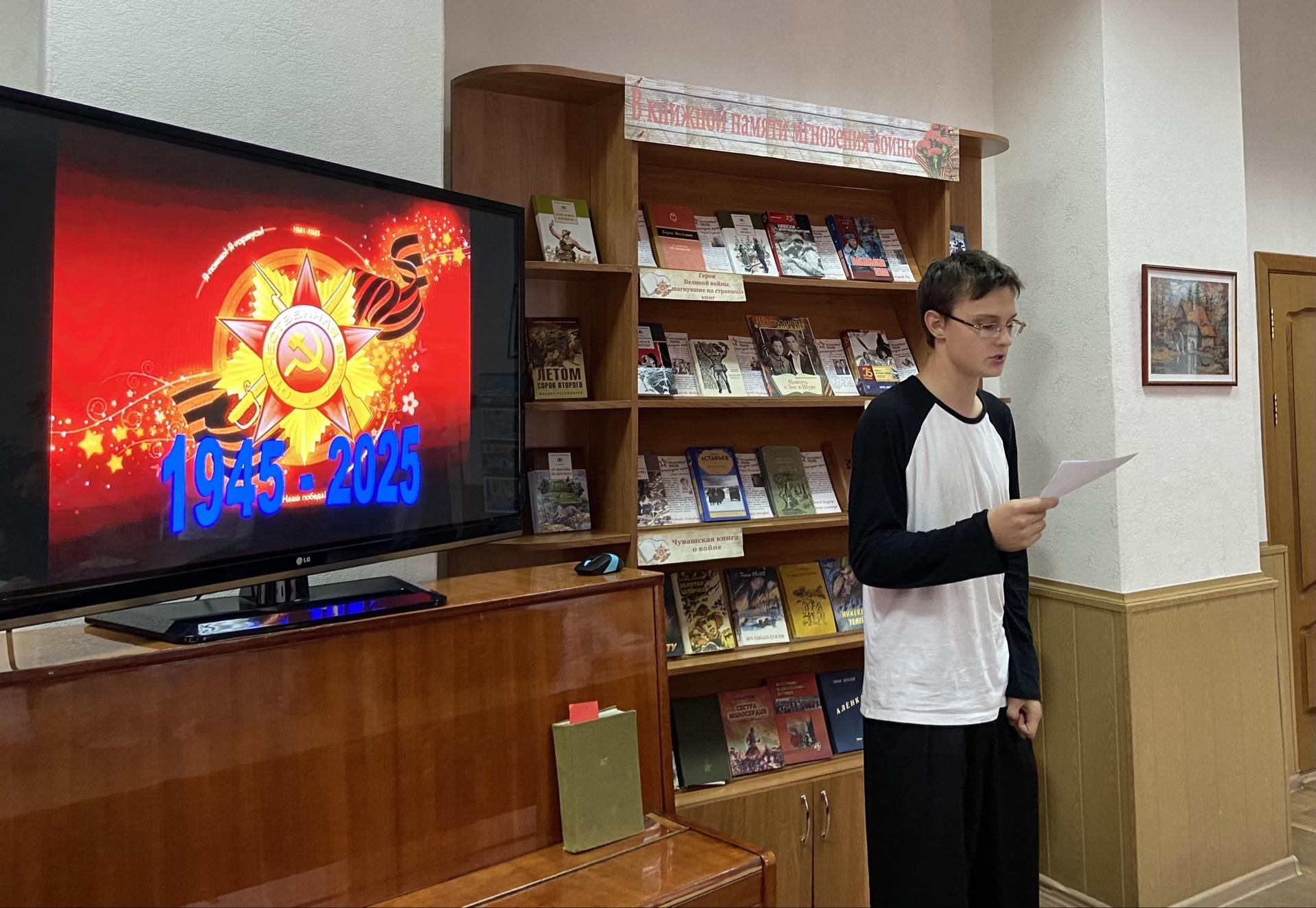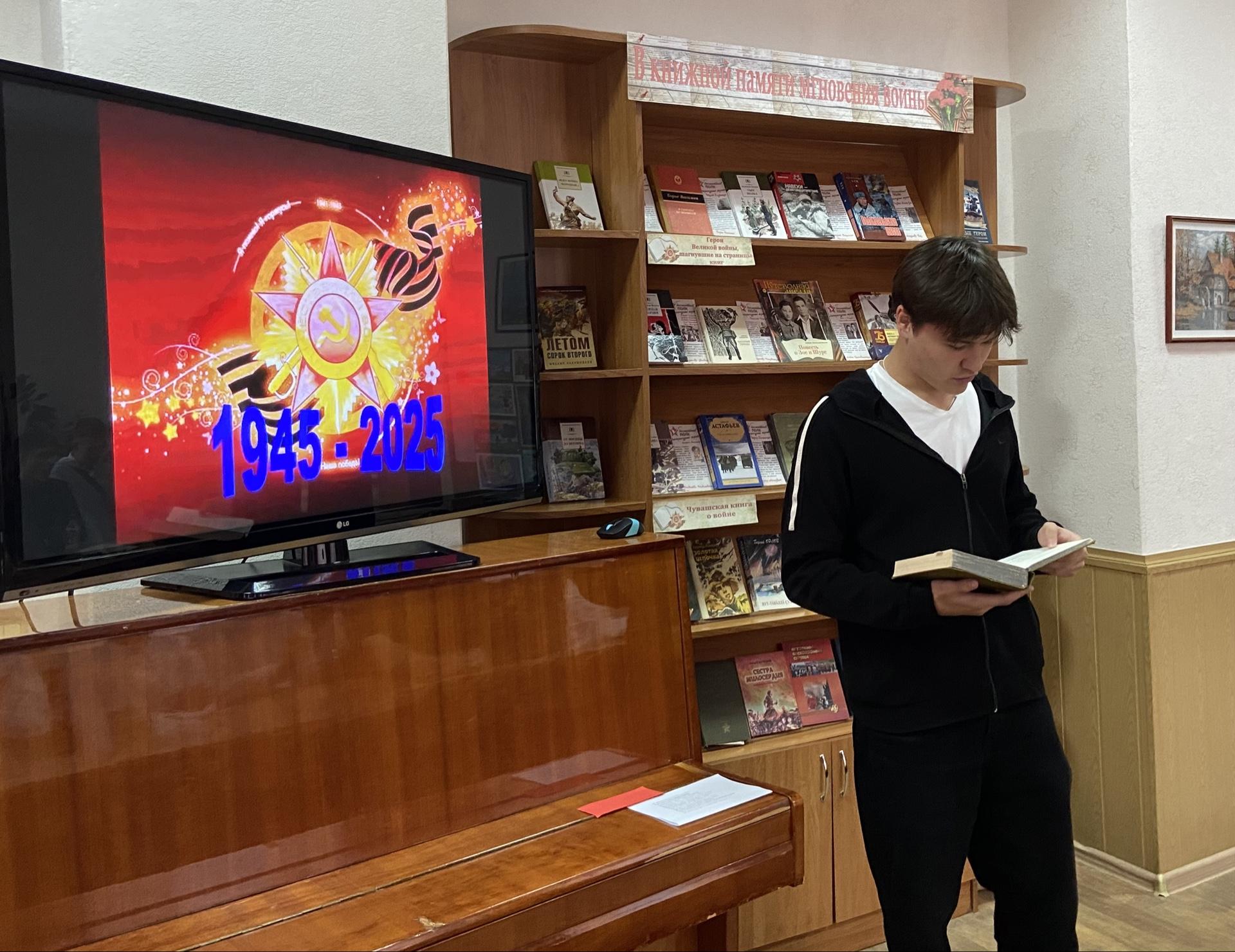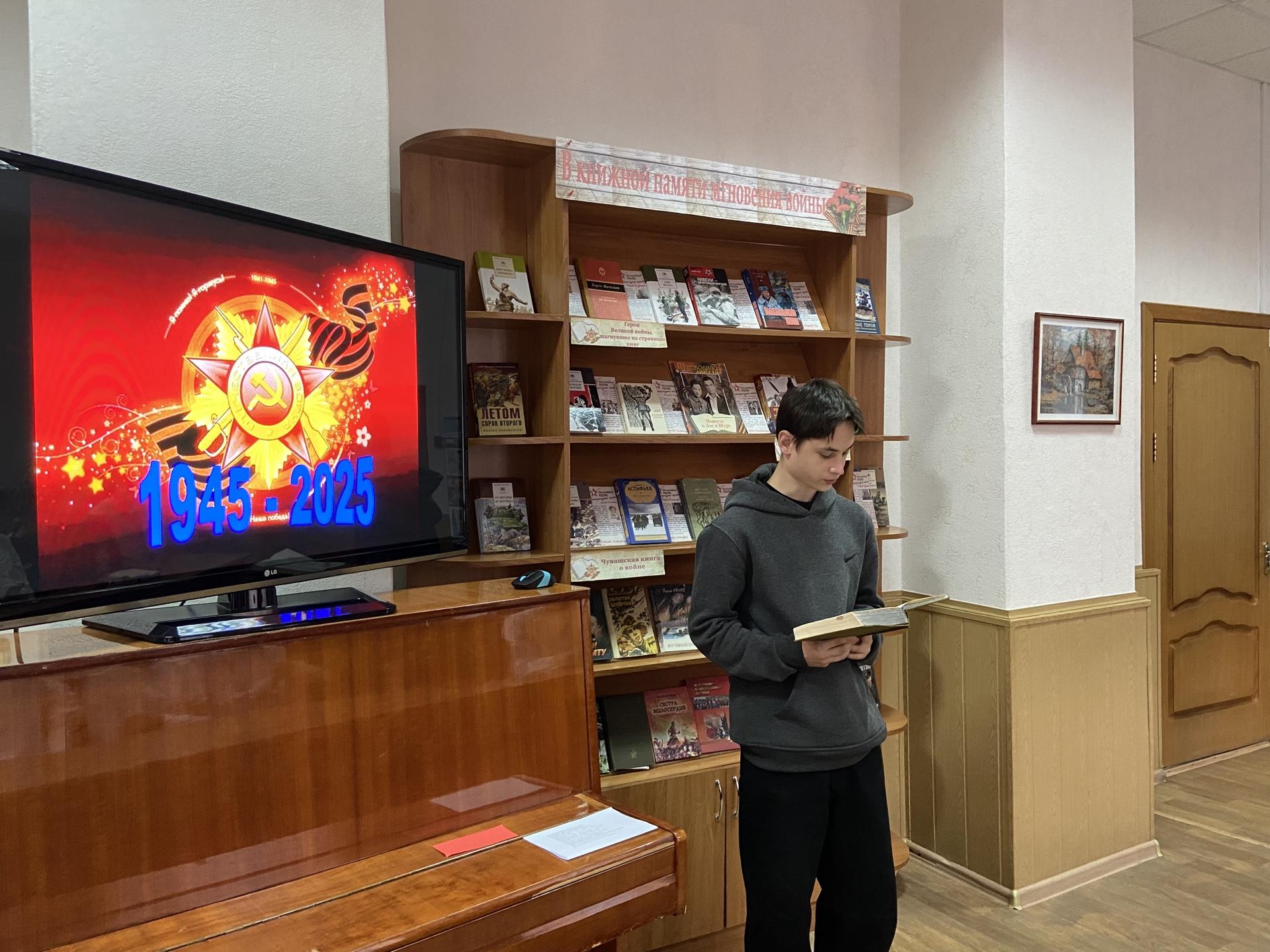 В ходе мероприятия молодежь читали стихотворения поэтов военных лет под музыку, создавая атмосферу, пропитанную духом времени. Студенты с энтузиазмом исполнили произведения таких авторов, как Константин Симонов, Александр Твардовский, Мусса Джалиль, Анна Ахматова и др., погружая слушателей в переживания и эмоции тех тяжелых лет. Каждое выступление сопровождалось рассказами о судьбах поэтов, их вклад в литературу и о том, как их творчество отражало реалии войны. Музыка, звучащая в зале, усиливала впечатление и помогала участникам лучше понять контекст написания стихов. В перерывах между чтениями библиотекарь Юлия Белкина проводила небольшие викторины, где студенты могли проверить свои задания о военной литературе и истории. Также была представлена выставка книг и материалов о Великой Отечественной войне, которые позволили молодежи глубже ознакомиться с темой.