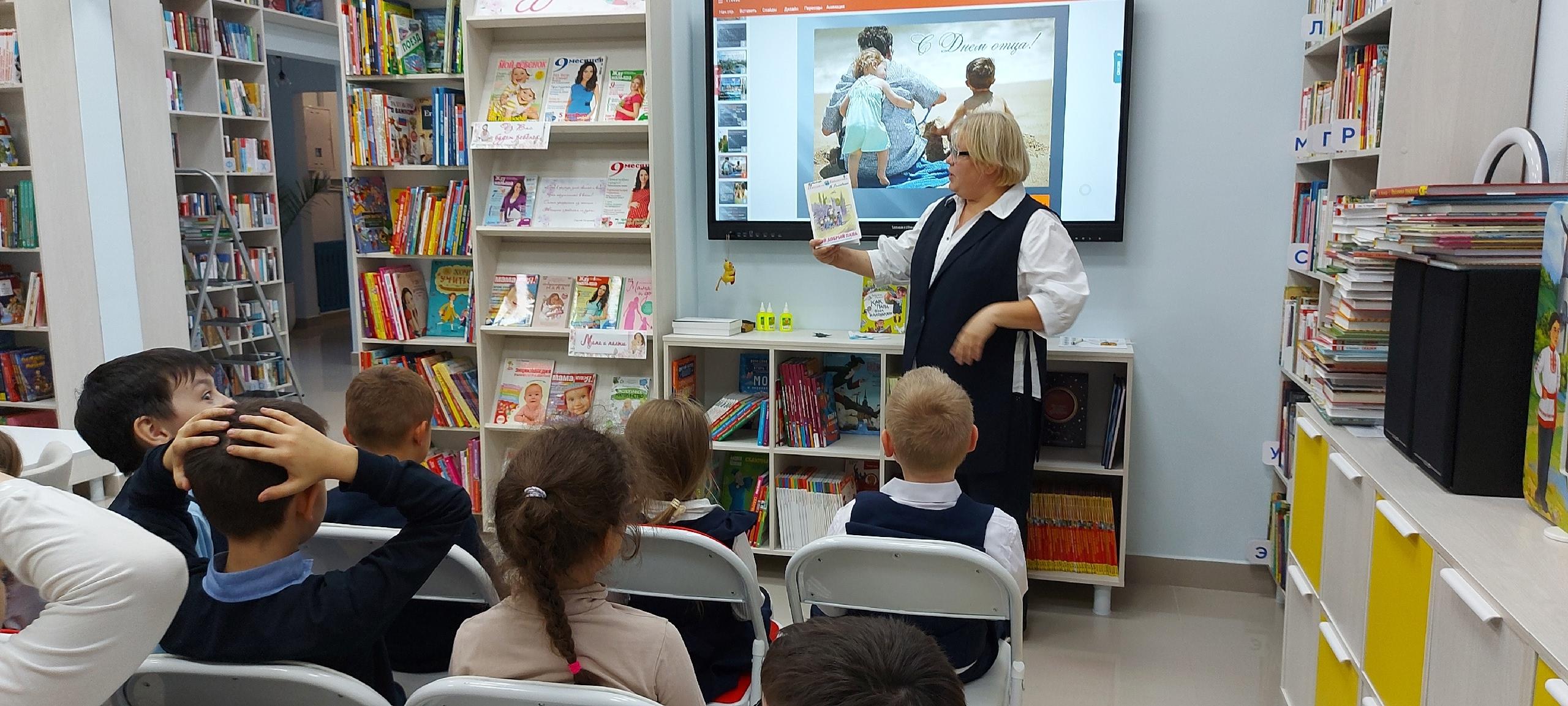 У относительно нового для нас праздника – Дня отца есть несколько дат. Большинство стран мира отмечают День пап в третье воскресенье лета. А вот в России День отца отмечают в третье воскресенье октября — соответствующий указ подписал президент России в 2021 году. 16 октября в детской библиотеке для учеников 2 «А» класса СОШ № 9 состоялся мастер – класс «Сюрприз для папы». Перед тем, как начать мастерить, ребята послушали с историей праздника и познакомились с книгами в которых главным героем выступает папа. Дети рассказали о том, какие у них папы: сильные, умные, храбрые, трудолюбивые, добрые, заботливые. Дети изготовили с помощью клея, ножниц и цветной бумаги открытку - сюрприз с трогательными поздравлениями для пап.