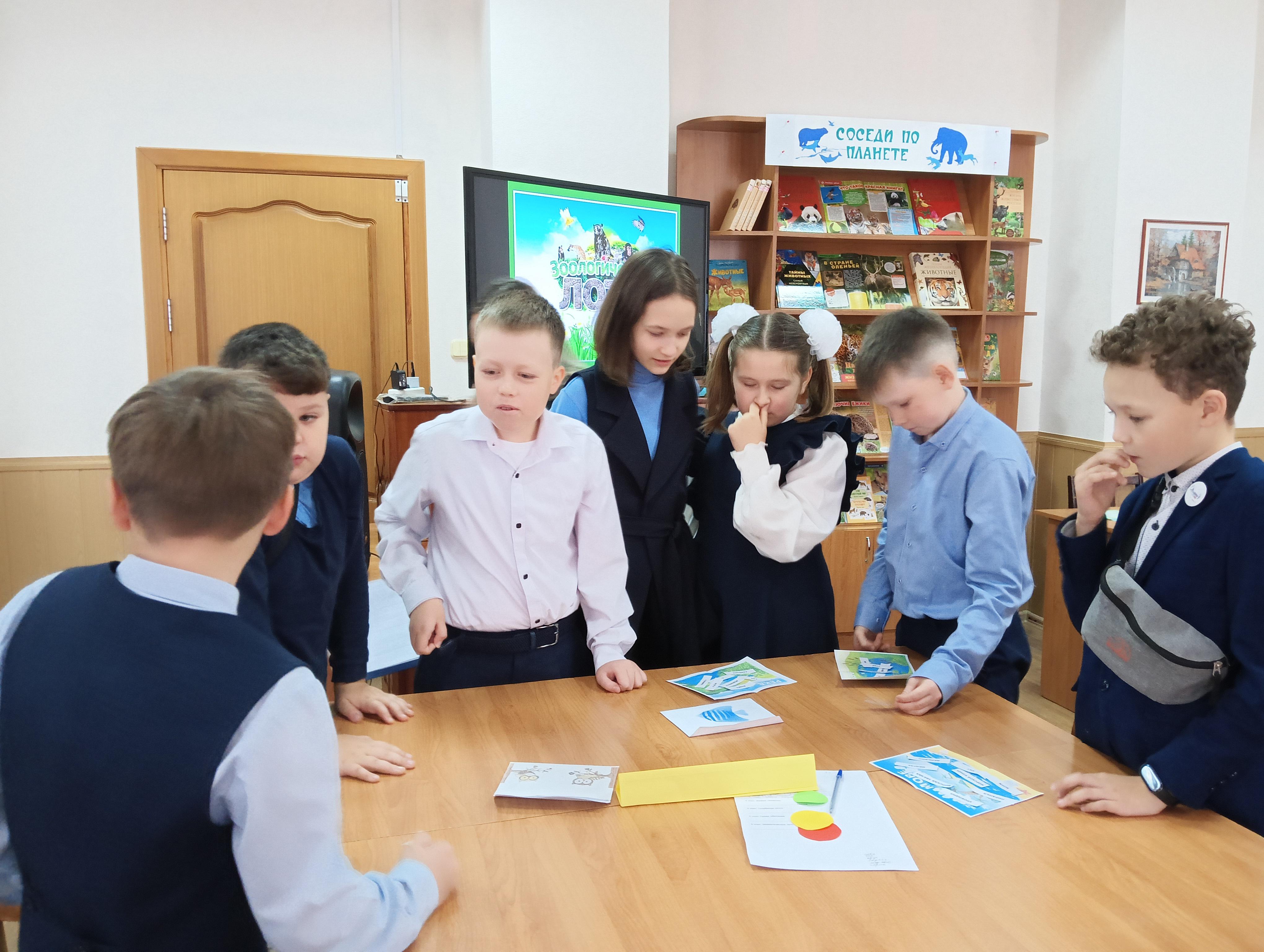 Библиотекарь Светлана Варламова рассказала школьникам об истории создания Всемирного дня защиты животных. Затем ребята, разделившись на три команды, отправились в занимательное и увлекательное путешествие, в ходе которого им предстояло сразиться на знание мира животных: их повадок, среды обитания, символов и др. Участники смогли задать вопросы и поделиться мыслями как они могут помочь животным в повседневной жизни. Дети были впечатлены историями о том, как человеческая деятельность влияет на их и среду обитания.