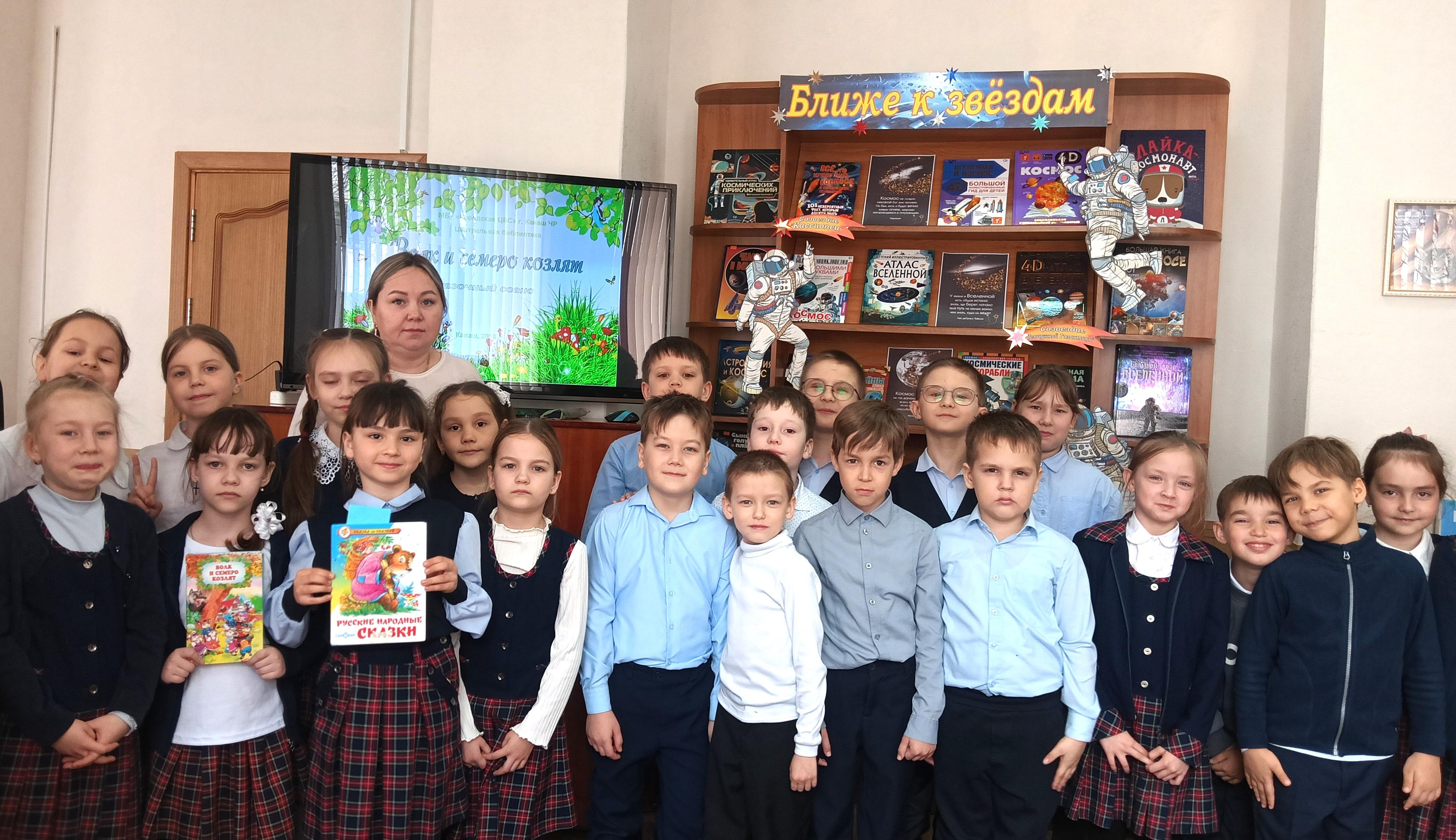 В Центральной библиотеке продолжается цикл сказочных чтений под названием «Жила - была сказка». Это особенное событие, приуроченное к Году единства народов России, призвано подарить детям волшебный мир историй и познакомить их с культурным наследием нашей страны. Убедиться в этом смогли первоклассники школы №5, для которых был организован настоящий праздник – мультсеанс по любимой многими сказке «Волк и семеро козлят».