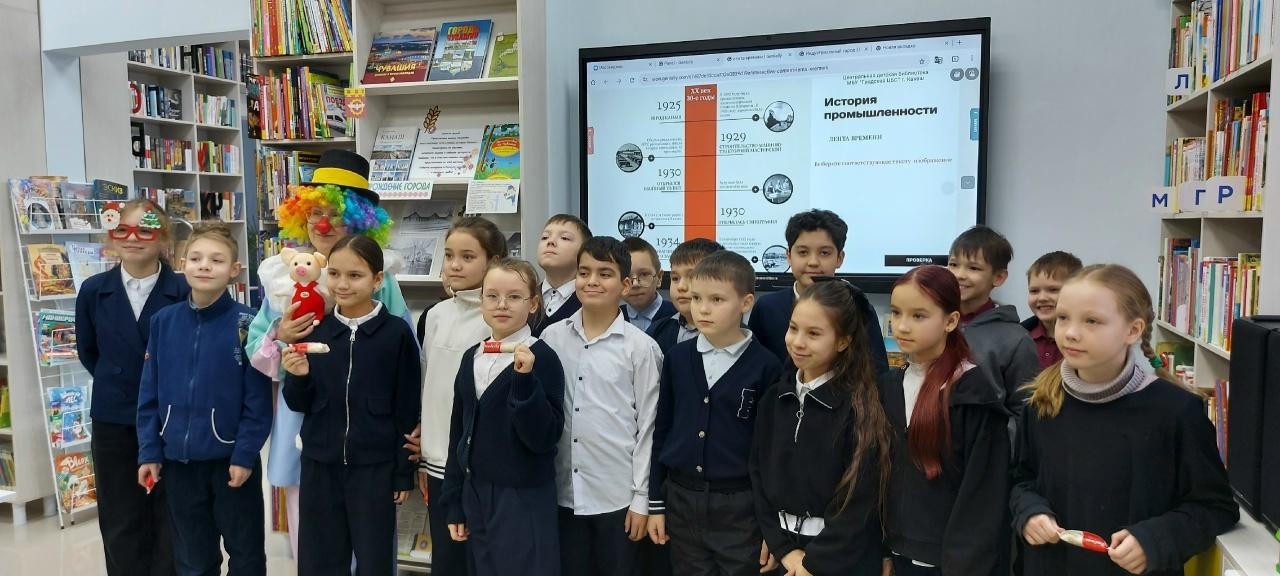 для учащихся 4 «А» класса СОШ № 9 состоялся обзор «Век Канаша: сквозь время и судьбы» квест - выставки «Сто страниц истории Канаша». В гости к ребятам явился сам Дядюшка Мокус (ведущий библиотекарь Е. Васильева) с поросенком Фунтиком. Вместе с детьми сказочные гости нашего города совершили незабываемое путешествие по истории Канаша. Библиотекари подготовили увлекательный маршрут, проходя который, школьники узнали интересные факты о городе, его достопримечательностях и известных личностях. Каждый этап квеста был наполнен увлекательными заданиями: викторинами, пазлами, поисками соответствий, кроссвордами, интерактивными заданиями. Дядюшка Мокус активно помогал ребятам, подсказывал им и с удовольствием знакомился с книгами о Канаше. В конце путешествия все участники собрали Капсулу времени и положили в неё письмо