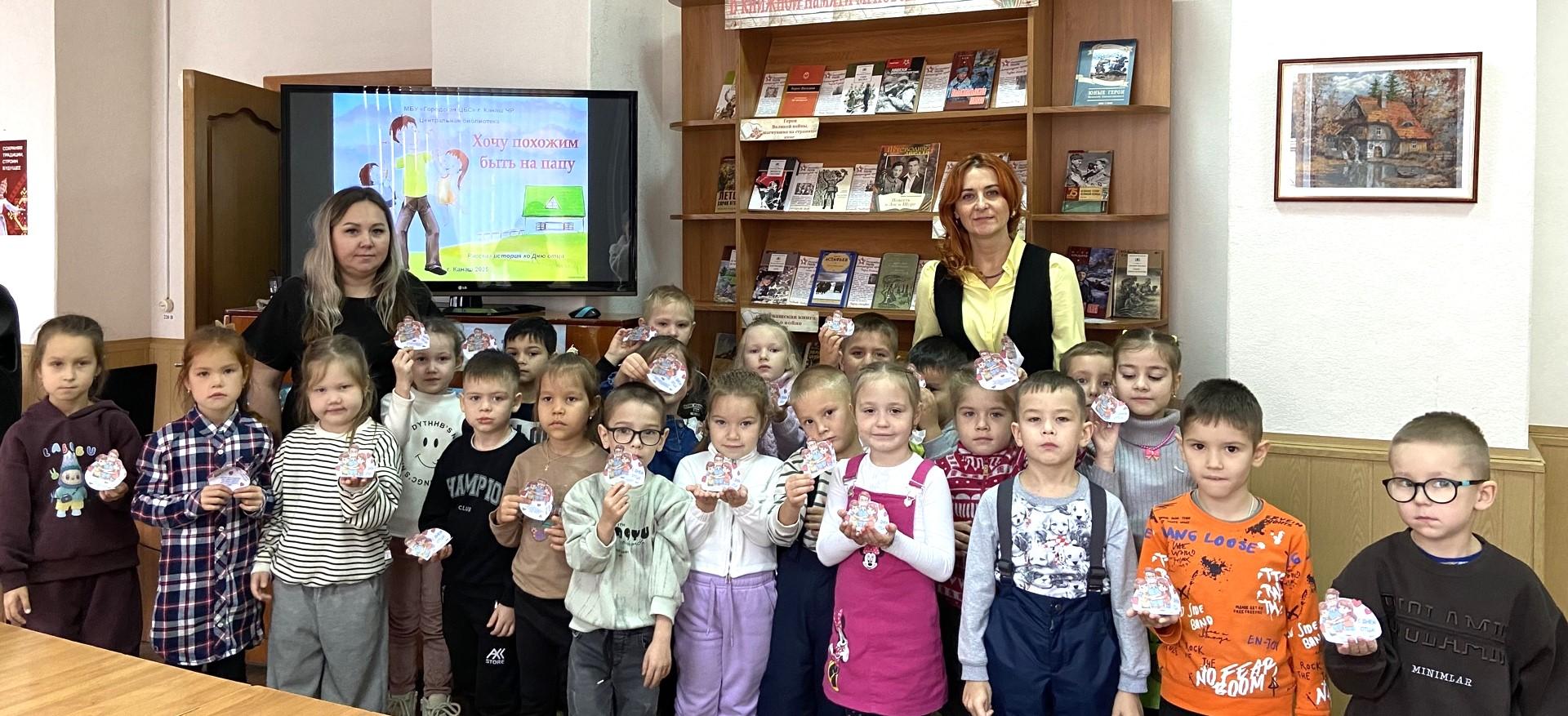 Отрывая флешмоб, библиотекарь Светлана Варламова рассказала ребятишкам об истории праздника и показала мультипликационный фильм «Что такое хорошо и что такое плохо?», снятый по мотивам произведения поэта Владимира Маяковского. Затем дети по очереди выходили на импровизированную сцену, читая подготовленные за ранее стихи, выбранные из любимых книг. Звучали строки о смелости, заботе и любви пап, о том, как они помогают, играют и поддерживают своих детей. Вдохновившись, детишки дружно изготовили сюрприз для пап своими руками.