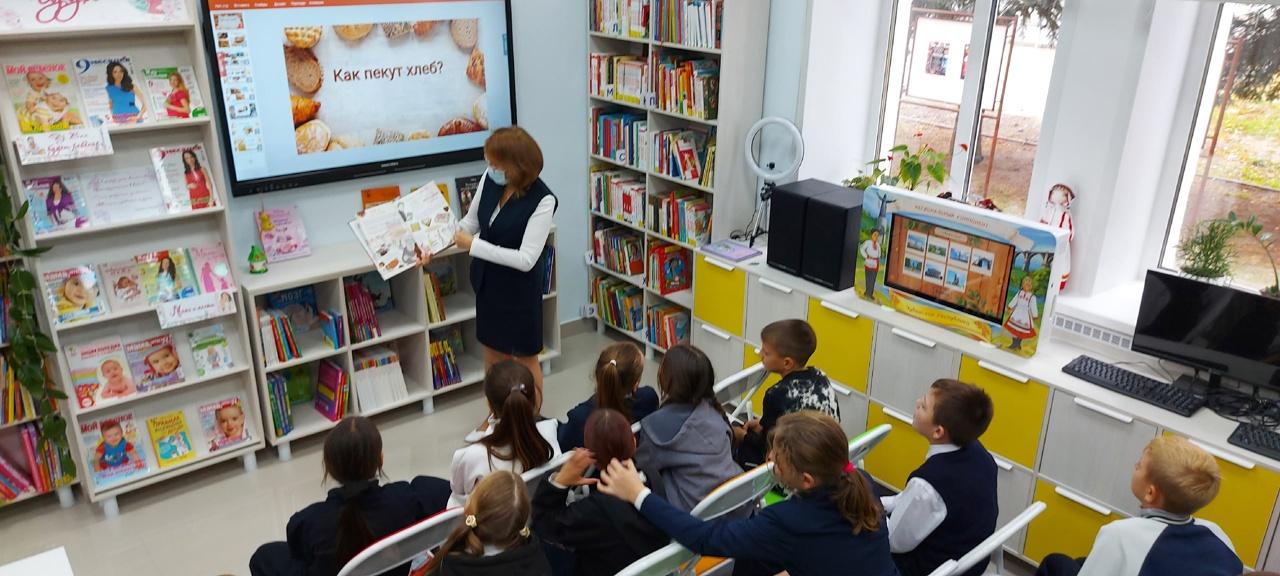 15 октября ко Всемирному дню хлеба в детской библиотеке для учеников 4 «А» класса СОШ № 9 состоялся познавательный экскурс «Хлеб – всему голова». Ребята узнали, какой длинный путь проходит хлеб, прежде чем оказаться на нашем столе. Послушали стихи о хлебе. Отгадали загадки. Посоревновались в том, кто больше знает видов хлебобулочных изделий, кто назовет национальный хлеб разных народов. Библиотекарь Е. Васильева рассказала детям, что у русского народа очень много пословиц, поговорок о хлебе, сказок, где герои готовят или пекут хлеб или даже сделаны из теста. С ребятами поговорили о том, что к хлебу нужно относиться бережно и уважительно. Познакомили с новинками библиотеки – книгами А. Лот-Игнатюк «Все едят блинчики», С. Кэрон «Угощения по-королевски», С. Кайдаш-Лакшиной «Все любят пряники» и другими.