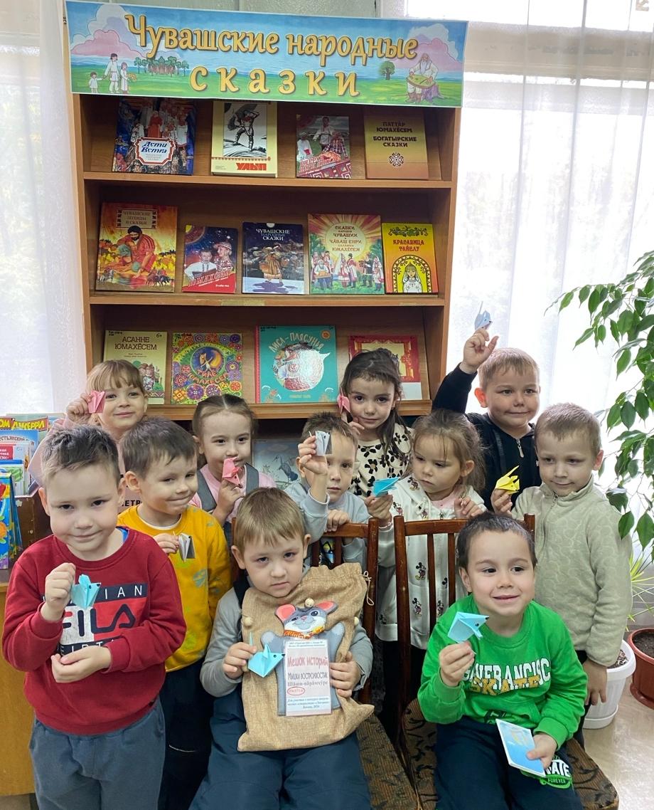 Вначале библиотекарь Светлана Васильева провела с маленькими читателями небольшое путешествие в мир чувашской детской литературы и его сказочных героев. Им были представлены такие известные сказки как «Лиса плясунья», "Дети ветра", "Девушка на луне" и.т.д. С увлечением малыши послушали сказку чувашскую народную сказку «Мышка- вострохвостик», про мышку, которая мечтала о путешествии в неведомые края. Однажды на берегу реки она увидела арбузную корку, столкнула её в воду и поплыла на ней... Дети с вдохновением разыграли по ролям сказку, изображая голосом каждого героя. С помощью пальчиковых игрушек герои сказки: мышка, зайчик, лиса, волк и медведь ожили и заговорили.