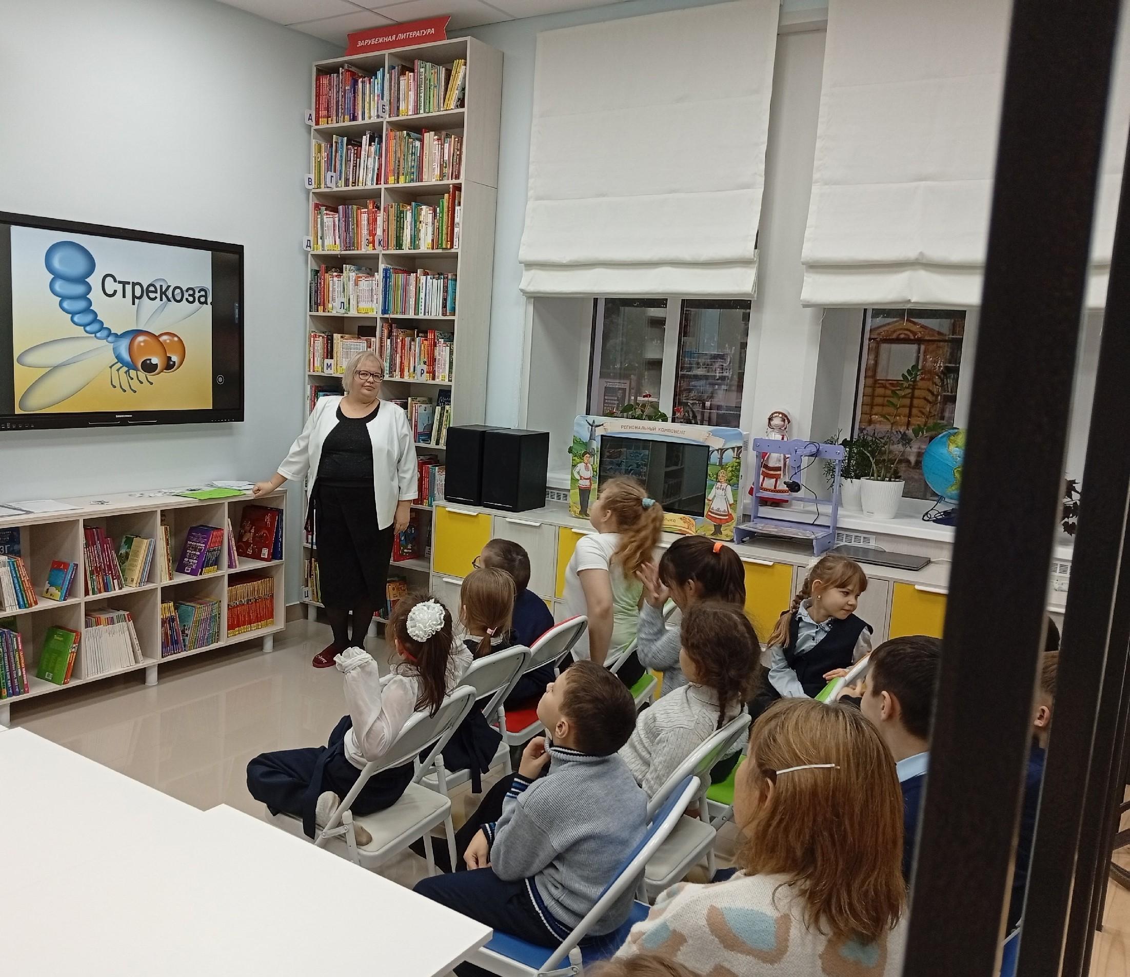 27 ноября в центральной детской библиотеке в рамках работы клуба «Муравейник» для учащихся 2 «А» класса СОШ № 9 состоялась видеоэкскурсия «Попрыгунья стрекоза».