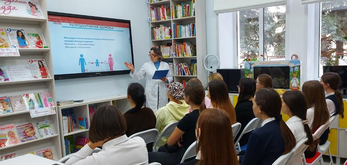 10 октября в детской библиотеке в рамках журфикса здоровья «Продуктивно о репродуктивном» состоялась встреча с врачом «Свет материнства» с ученицами 9 «В» класса СОШ №10 и студентками медколледжа. Основной целью проведения мероприятия стало воспитание гигиенической и духовной культуры у девушек, обучение навыкам, способствующим сохранению и укреплению здоровья, профилактика инфекционных заболеваний. На встречу со школьницами была приглашена преподаватель Канашского филиала Чебоксарского медицинского колледжа Н. С. Демидова. В ходе беседы Наталья Сергеевна рассказала девушкам об особенностях женского организма, о происходящих в переходном возрасте изменениях, об основных этапах полового созревания. Были даны рекомендации по гигиене тела, гигиене питания, по выбору нижнего белья, раскрывались проблемы, возникающие при небрежном отношении к своему репродуктивному здоровью. Девушки узнали, как влияют на молодой организм женщин вредных привычки. Получили информацию об обязательном ежегодном посещении женской консультации, о сохранении здоровья для будущего счастливого деторождения и материнства. Библиотекари провели обзор книжной выставки «В ожидании чуда».