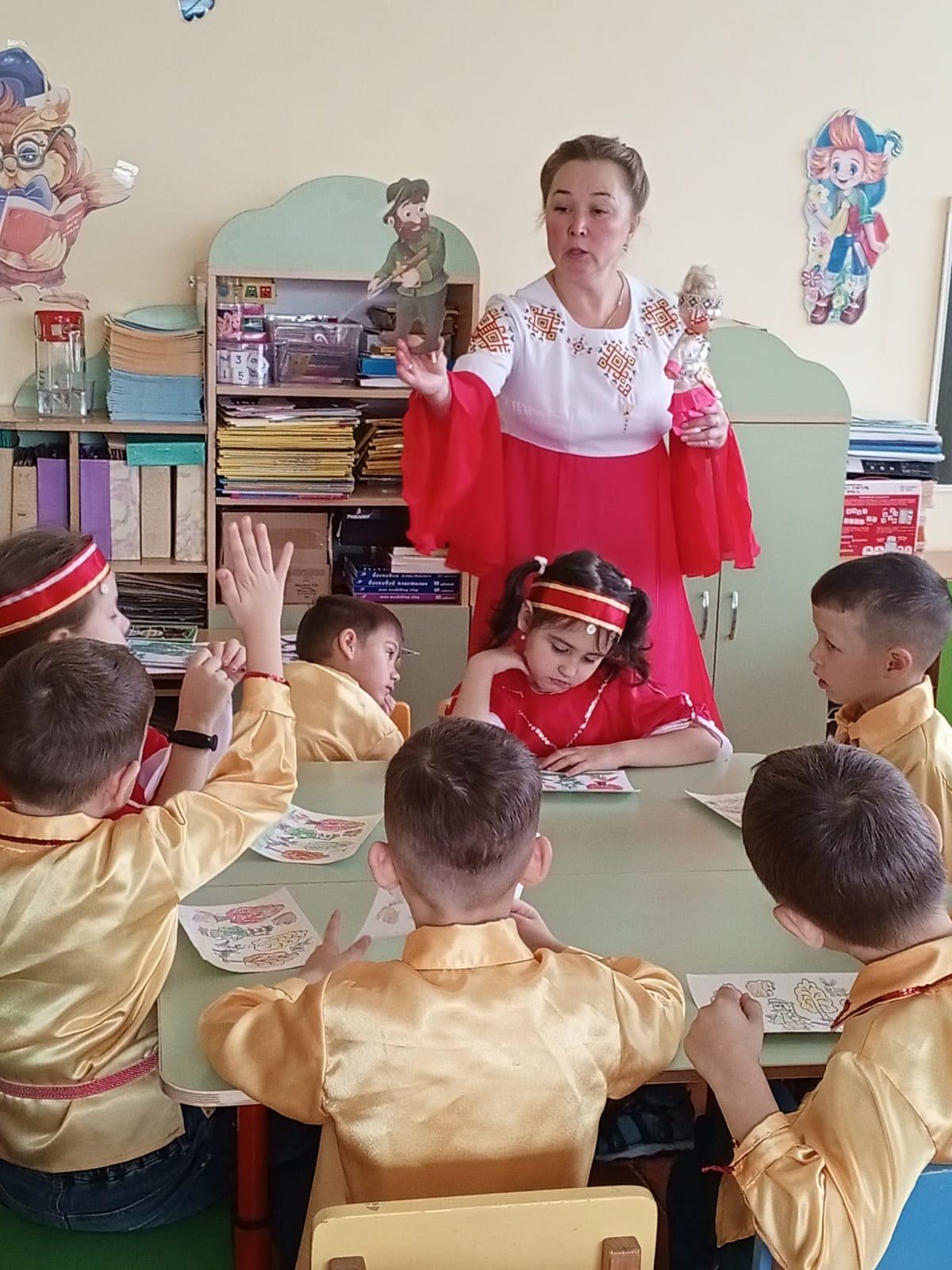 К нарядно одетым ребятишкам в гости пришла кукла Илемпи со свои другом сунарçă – Ҫтапан. Они с большим удовольствие поиграли с ребятишками в чувашские народные игры, вспомнили выученные слова, составили небольшие предложения. Отличным дополнением стал приход любимой бабушки Праски, которая в очередной раз приготовила для дошколят новую сказку. В ходе чтения обсуждались отрывки из вышеуказанной сказки, отвечали на вопросы бабушки Праски, выучили новые слова «юлташ и кăвакал». В завершении все вместе повторили, закрепили сегодняшний новый материал и послушали чувашскую народную песню «Вăрмана кĕнĕ чух шăхăрса кĕр…»