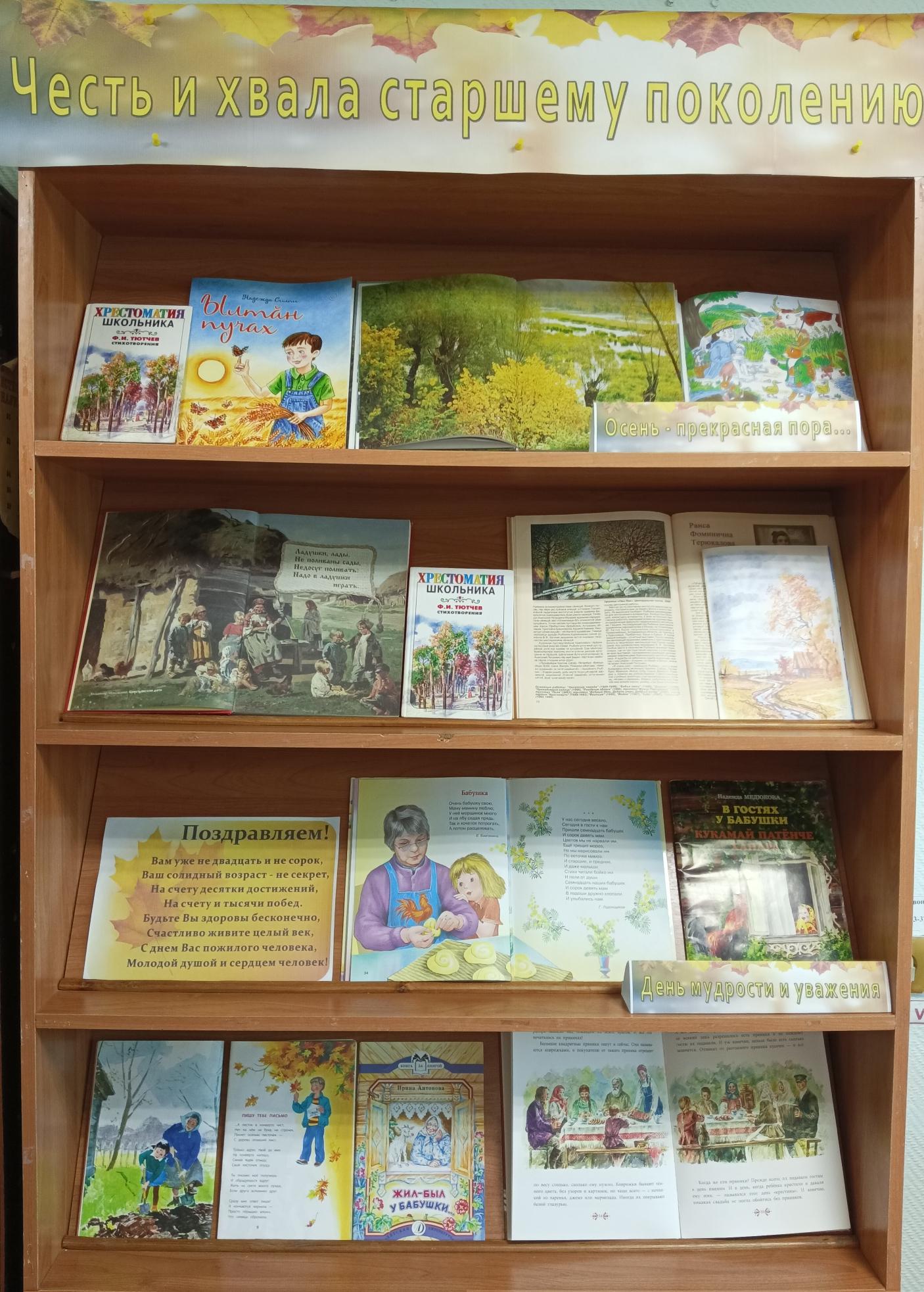 К Международному Дню пожилых людей в филиале №3 – библиотеке семейного чтения оформлена выставка-поздравление «Честь и хвала старшему поколению». День пожилых людей – особенный праздник, день уважения и почитания наших отцов и матерей, дедушек и бабушек. Этот день нужен для того, чтобы мы не забывали о том, какой большой вклад вносит старшее поколение в жизнь всего общества.
